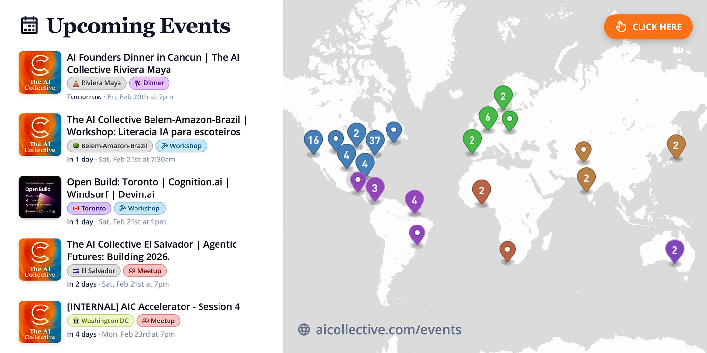 Head over to our Events Portal to get the latest on upcoming AI Collective events near you. Search by city, date, or event format, and join thousands of builders at events across 100+ chapters on every continent (except Antarctica, for now).